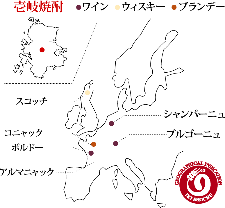 世界的に見ても産地指定を受けた酒は数少なく、ウィスキーはスコッチ、バーボン。ブランデーはコニャック。ワインはボルドー、シャンパーニュなど。壱岐焼酎は世界に認められた、日本を代表する蒸留酒です。